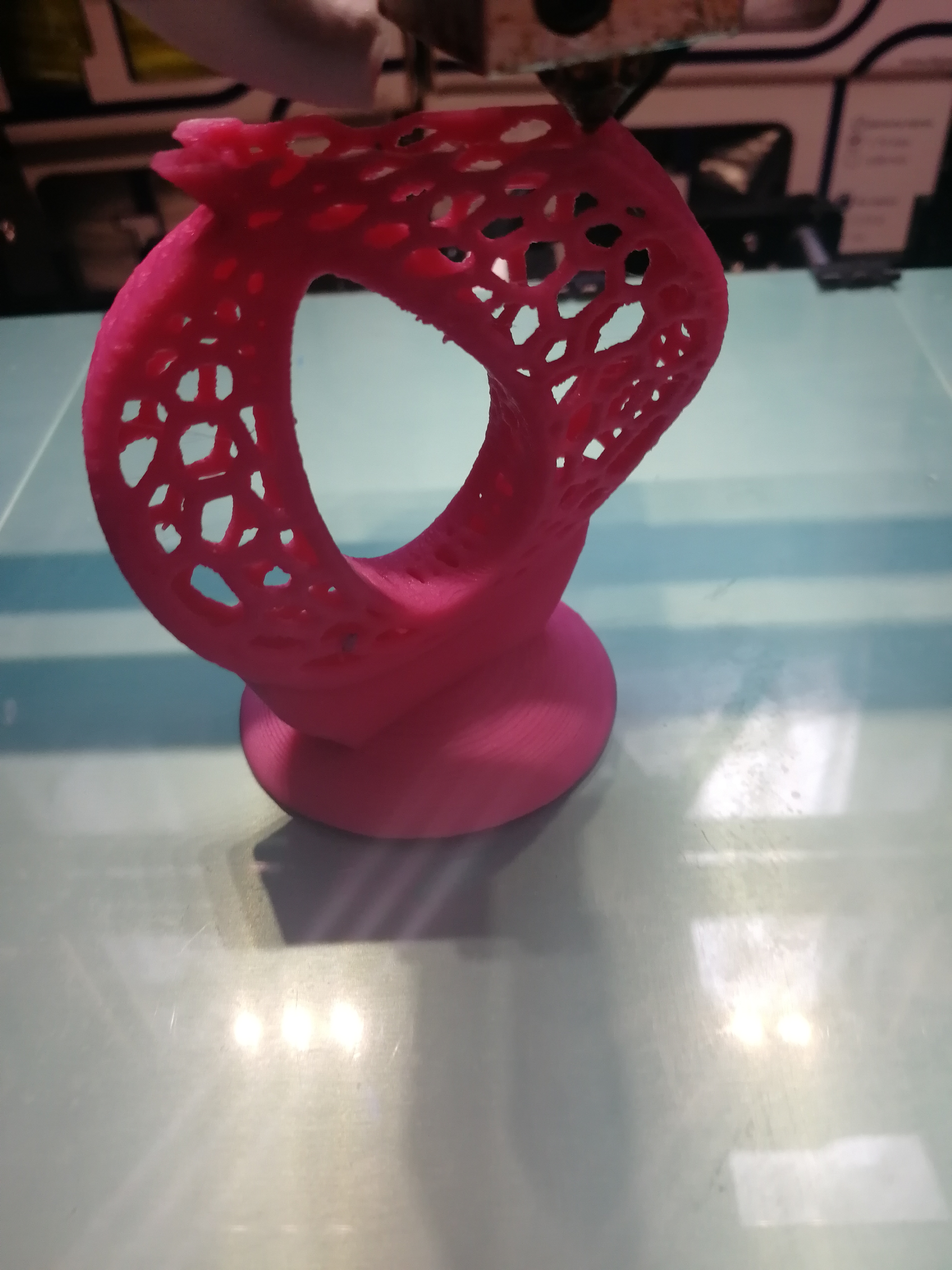 Пластик розовый PLA от FDPlast (дёшево и сердито), температура экструдера 195°C.