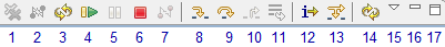 Управление в режиме отладки осуществляется панелью в окне Debug: