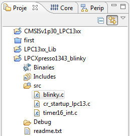 - CMSISv1p30_LPC13xx – будем считать, что это базовая библиотека и без неё ничего не работает.