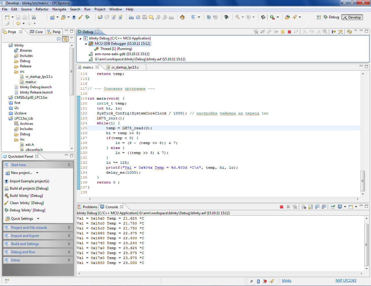 LPCXpresso Урок 15. I2C. Работа с термометром LM75.
